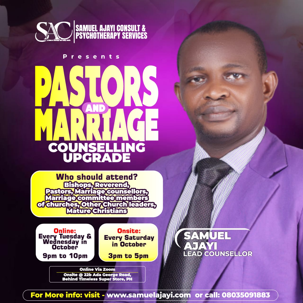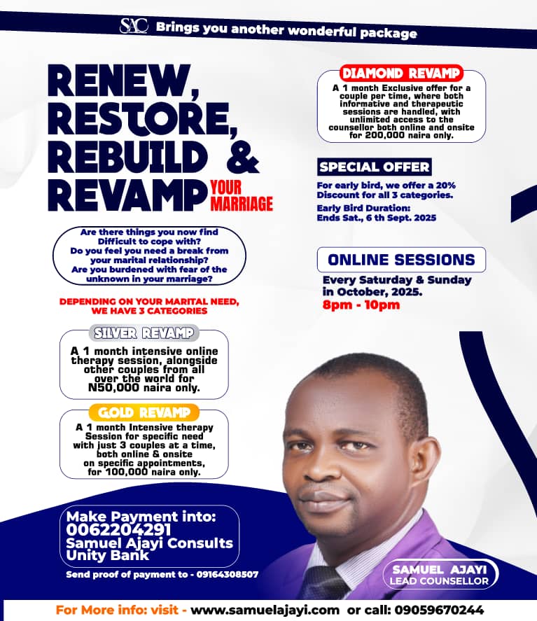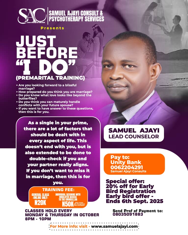 Samuel Ajayi is an international conference speaker on pre-marital relationship, marriage, parenting and family life.